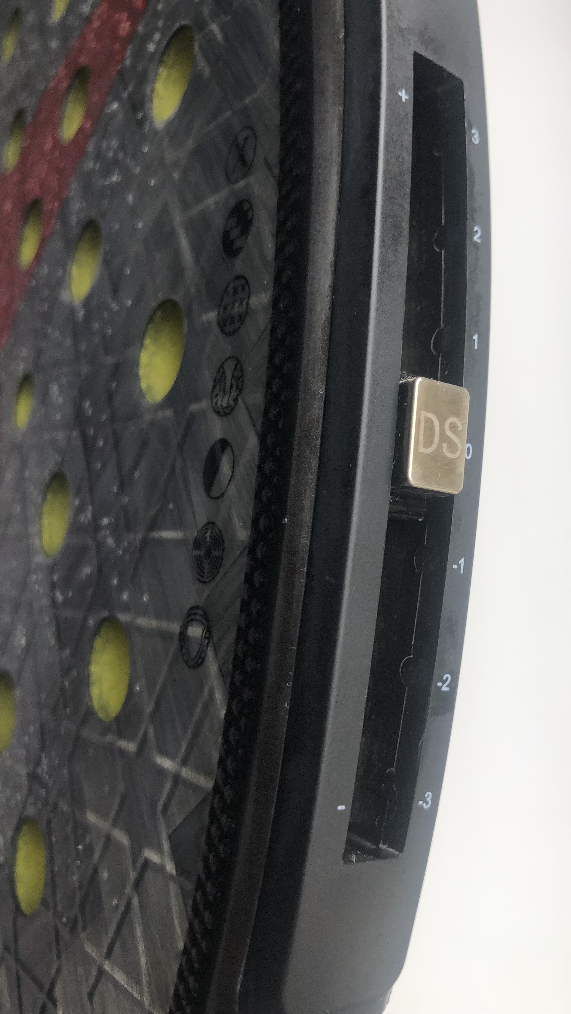 При установке в нижнее положение - баланс становится наиболее нейтральным и появляется ощущение гибридного управления ракеткой – мощности, совмещённого с контролем. Система имеет пять фиксированных позиций регулировки на каждой стороне ракетки.