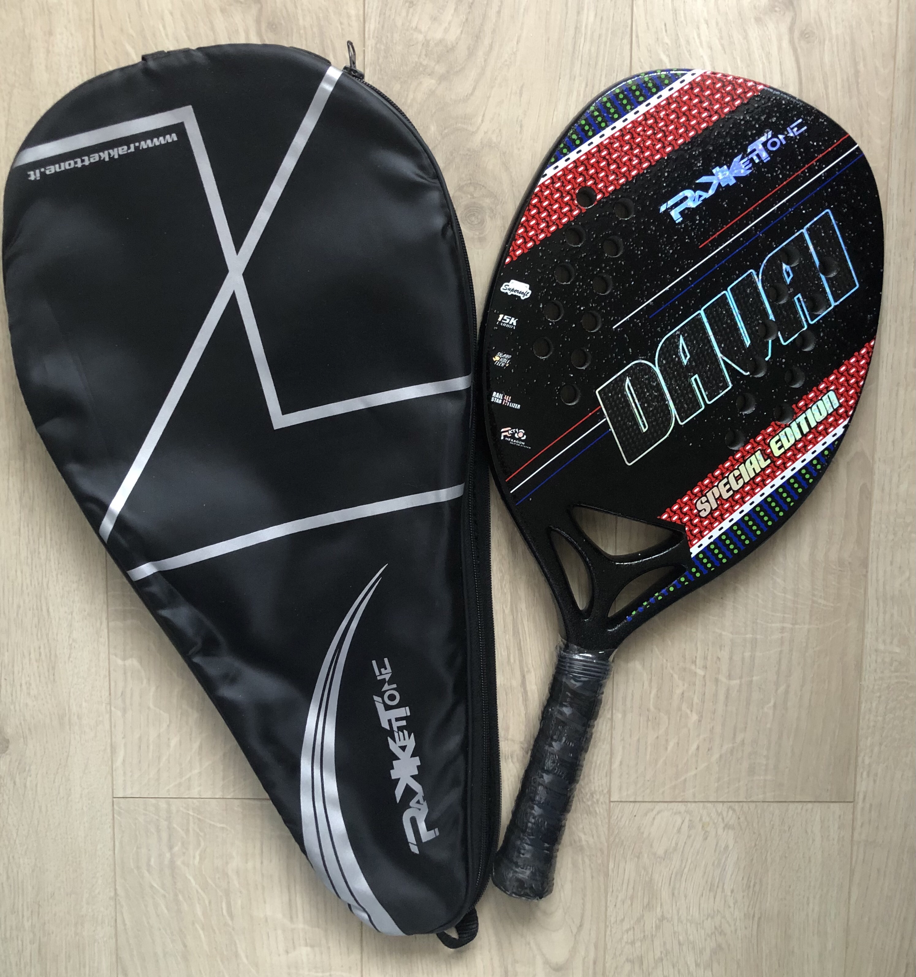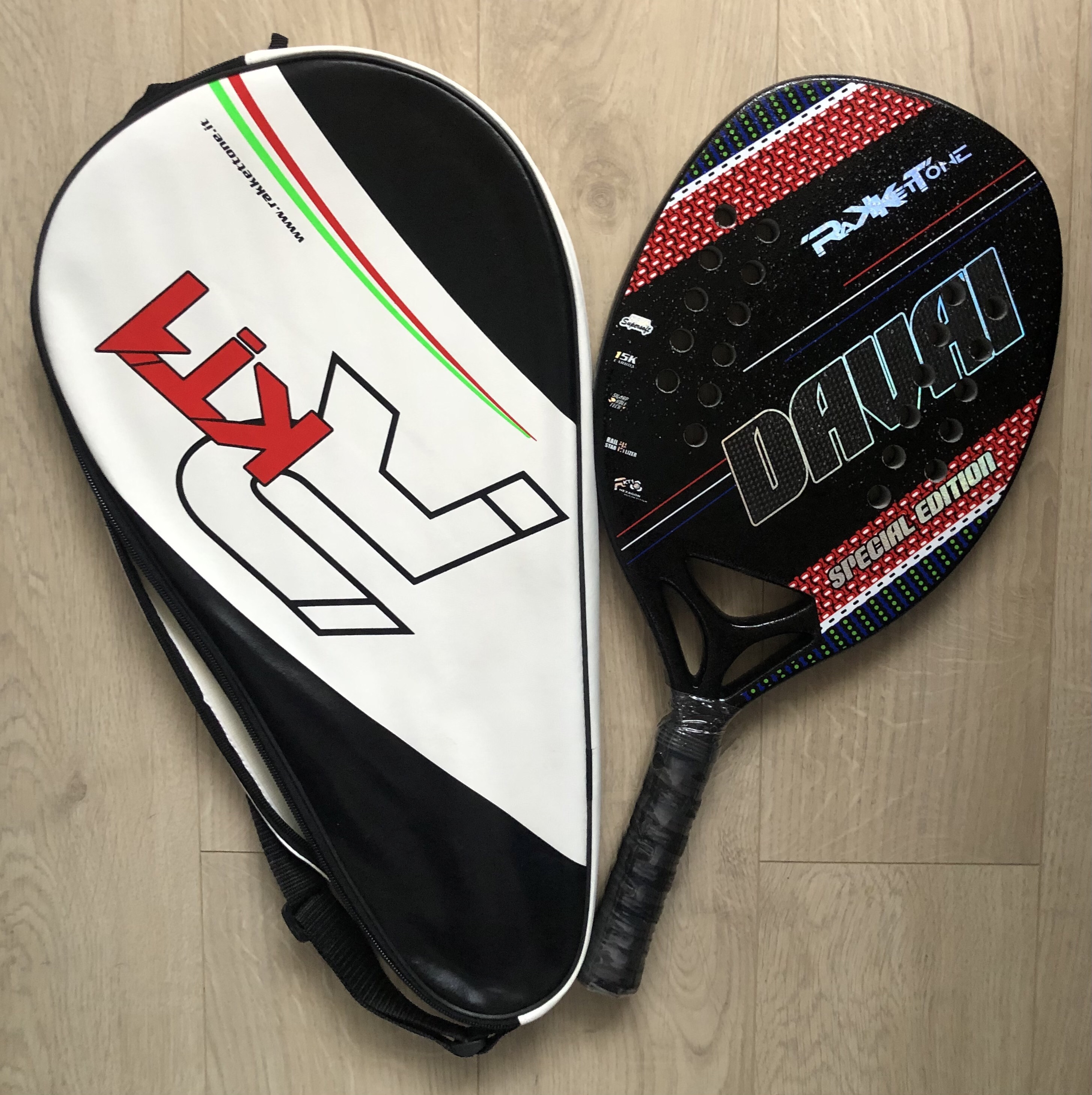 Легендарная Ракетка Никиты Бурмакина! Выбор первой ракетки мира, чемпиона Европы 2019, серебряного призера Чемпионата мира 2018 в Итальянском Червии и победителя основных турниров 2018-2019 года. История этой ракетки начинается с того момента, когда Никита впервые ворвался на мировую арену профессионалов пляжного тенниса. Итальянцы были обескуражены высочайшем уровнем Российского лидера. На корте Никита Бурмакин просто творит чудеса! И каждый выигрыш сопровождает победным: «Давай!». Итальянцы не понимали, что означает это слово, но они ясно осознавали, что для Никиты это слово символизирует победу! Лучший мировой рейтинг Никиты Бурмакина – это ТОП 1. Поэтому, каждый раз прикасаясь к «Давай!» помните, что у вас в руках оружие мирового лидера. Rakkettone DAVAI special edition Rakkettone – это ракетка для профессиональных игроков, которые хотят улучшить свои достижения. Ракетка разработана по технологии Carbon 3K technology. Конструкция ракетки обеспечивает плотный и надежный удар по мячу. Особое расположение отверстий обеспечивает повышенную эластичность и упругость в момент отражения сильных ударов соперника. С этой ракеткой мячи благополучно возвращаются на противоположную половину. Все эти качества способствуют в повышение точности ударов и скорости в игре. Силиконовая обшивка дает возможность еще больше насладиться моментами, когда удары наносятся стабильно, а главное, без ошибок. Технические параметры: Состав ракетки - 100% Carbon 3K. Сердцевина ракетки обладает превосходными свойствами - стойкостью и гибкостью одновременно. Ракетка поставляется вместе с чехлом.