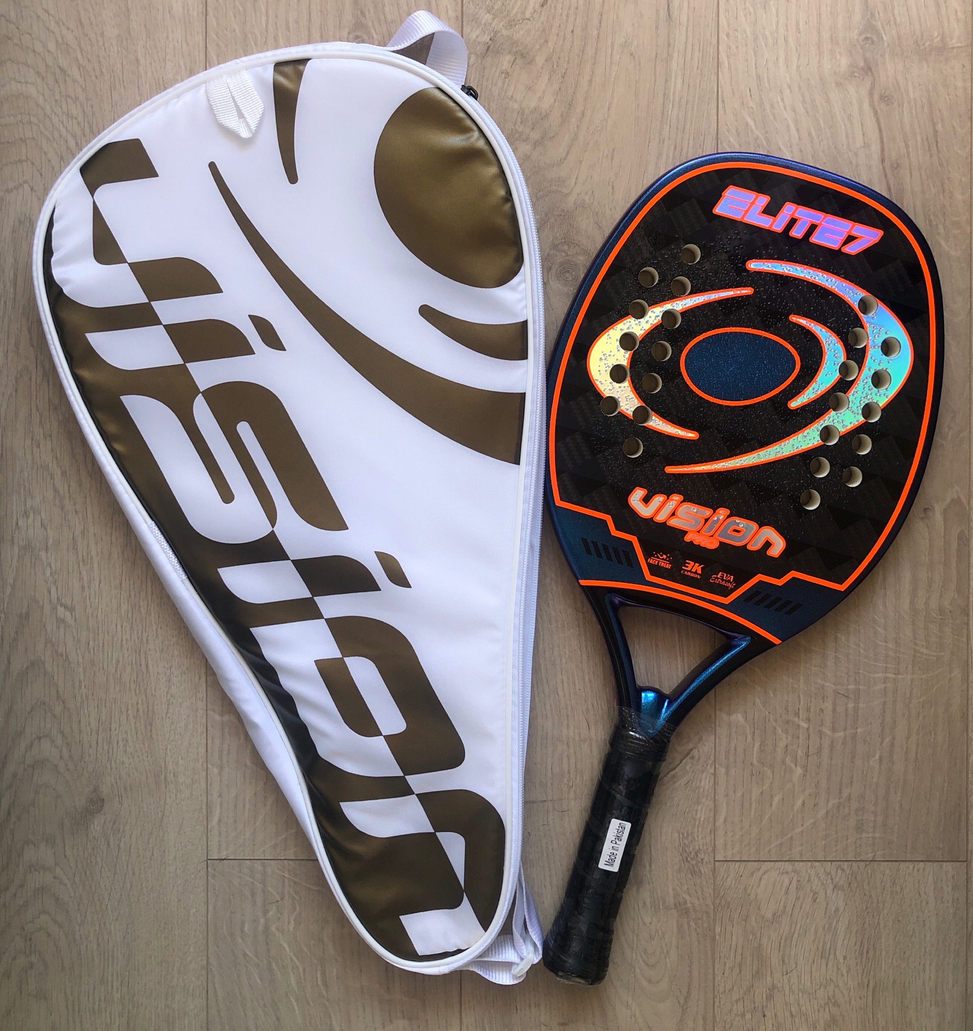 Это профессиональная ракетка. Толщина: 22 мм. Вес 322 г. Длина 50 см. Материал: CARBON 3K. Бьющая часть: Eva Extra soft. Баланс: центральный. Ракетка поставляется вместе с чехлом.
