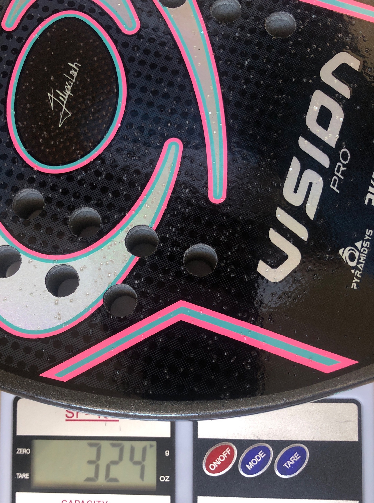 Это профессиональная ракетка. Толщина: 21 мм. Вес 324 г. Длина 50 см. Материал: Gold Carbon Titanium 3K. Внутреннее наполнение: Eva Extra soft. Баланс: центральный. Ракетка поставляется вместе с чехлом.
